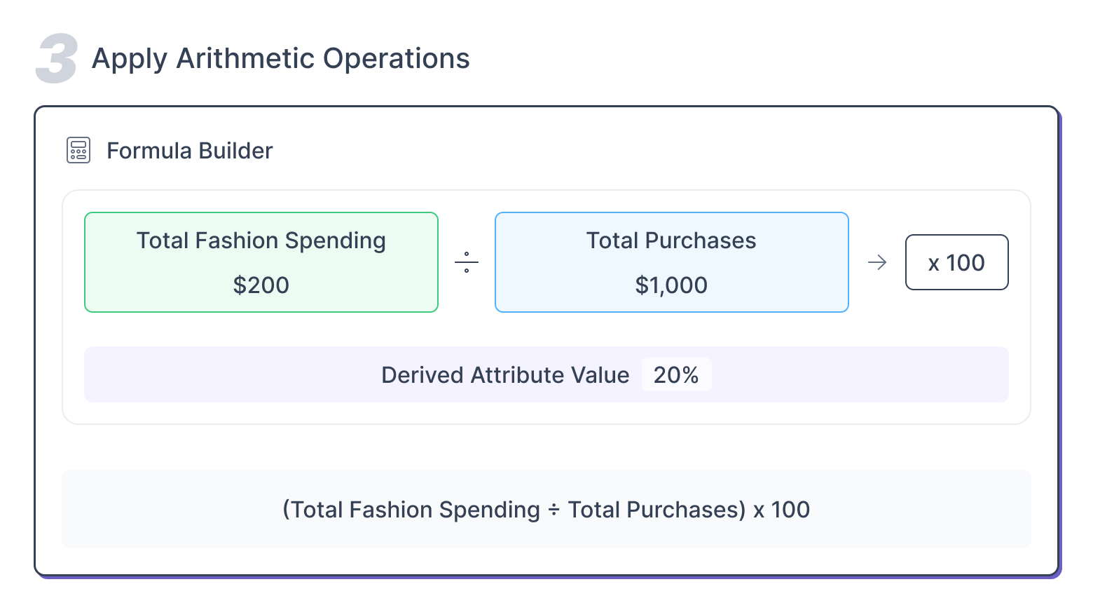 Use Case: Measuring User Spending Behavior with Derived AttributesTo understand what percentage of a user’s total spending goes toward a specific category, such as “Fashion.”