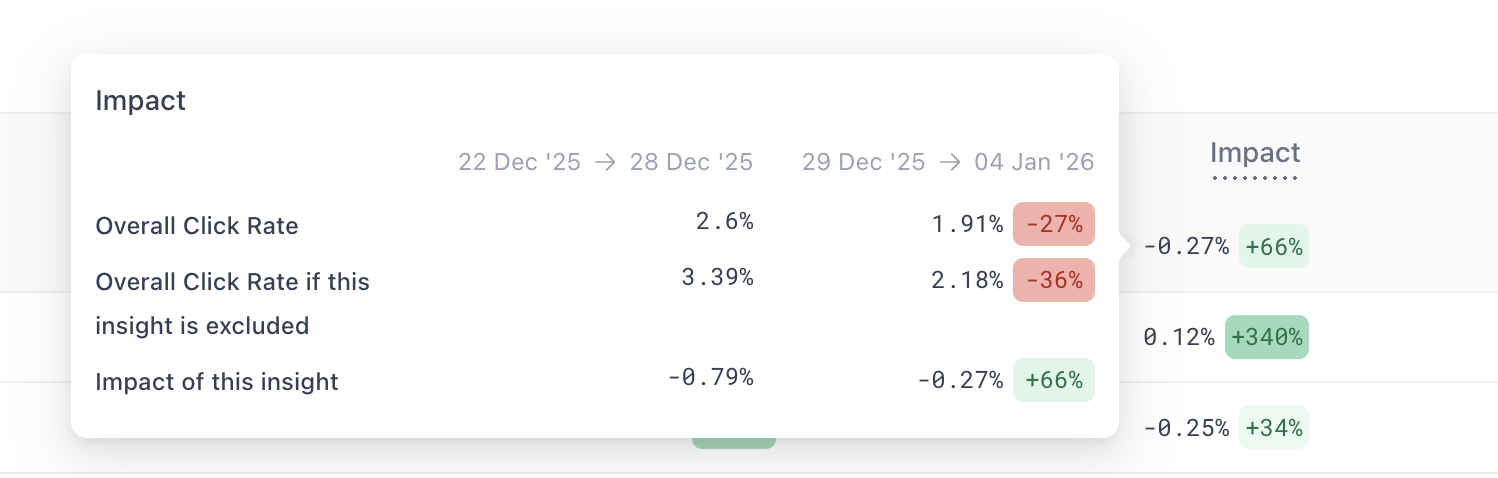 This means that unless your campaign content changes drastically, similar messages will always be grouped under the same Smart Tag every week. This precision ensures that your trends are based on actual performance changes, not random variations in how the AI labels your data.